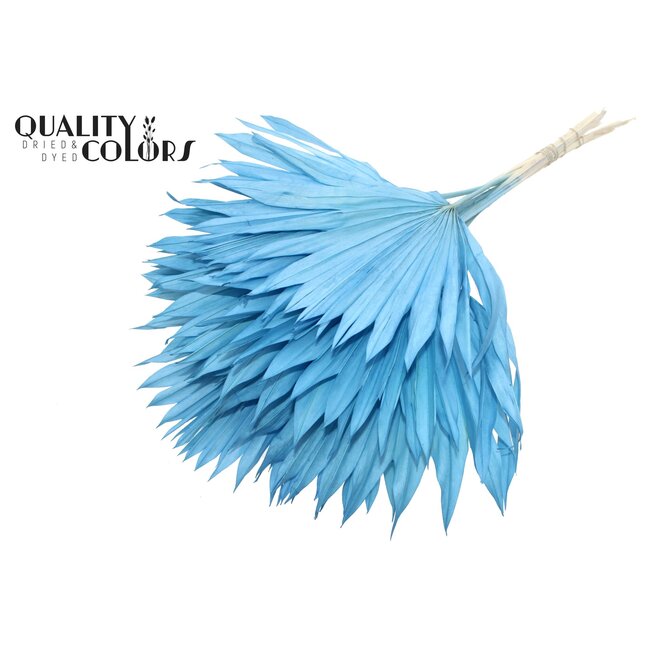 Entdecken Sie den einzigartigen Charme des QC getrockneten Palmblatts in Fächerform, eine auffällige Ergänzung für jede dekorative Anordnung. Diese intensiv hellblauen Palmblätter sind eine perfekte Wahl für Floristen, Innenarchitekten und Eventplaner, die nach einem markanten und nachhaltigen Element suchen. Mit einer Länge von etwa 50 Zentimetern und geliefert in Bündeln von 10 Zweigen bieten diese Palmblätter Vielseitigkeit und Stil für verschiedene Anwendungen.