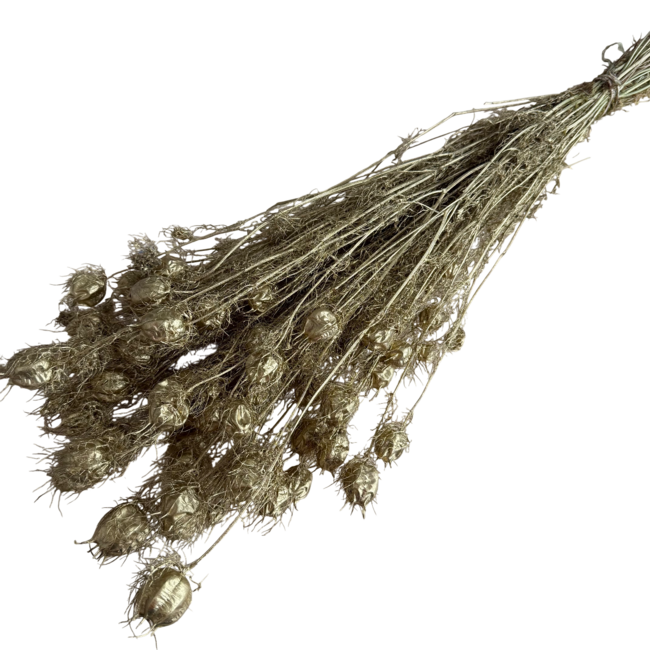 Die goldfarbenen Nigella Trockenblumen von Dutch Dried sind eine raffinierte Wahl für Fachleute, die nach hochwertigen und nachhaltigen dekorativen Lösungen suchen. Diese Trockenblumen, mit einer Länge von etwa 55 Zentimetern und einem Gewicht von 100 Gramm, sind perfekt für Floristen, Innenarchitekten und Eventplaner, die ihren Kreationen einen Hauch von Luxus und Eleganz verleihen möchten. Die metallische Farbe dieser Nigella Trockenblumen sorgt für einen auffälligen visuellen Effekt, ideal für sowohl moderne als auch klassische Arrangements.