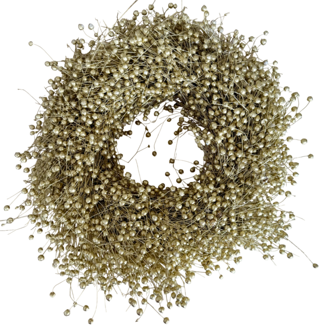 Der Goldfarbene Flachs-Kranz Ø 30 Zentimeter von Dutch Dried ist ein raffiniertes Beispiel für Handwerkskunst in den Kategorien Kränze und Dekoration. Dieser Kranz, hergestellt aus natürlichen Materialien, bietet eine elegante und nachhaltige Lösung für Floristen, Innenarchitekten und Eventplaner. Die sorgfältig ausgewählten Flachsblumen sind getrocknet und mit einer goldfarbenen Beschichtung versehen, was ihnen ein luxuriöses Aussehen verleiht, das perfekt sowohl in moderne als auch klassische Einrichtungsstile passt.