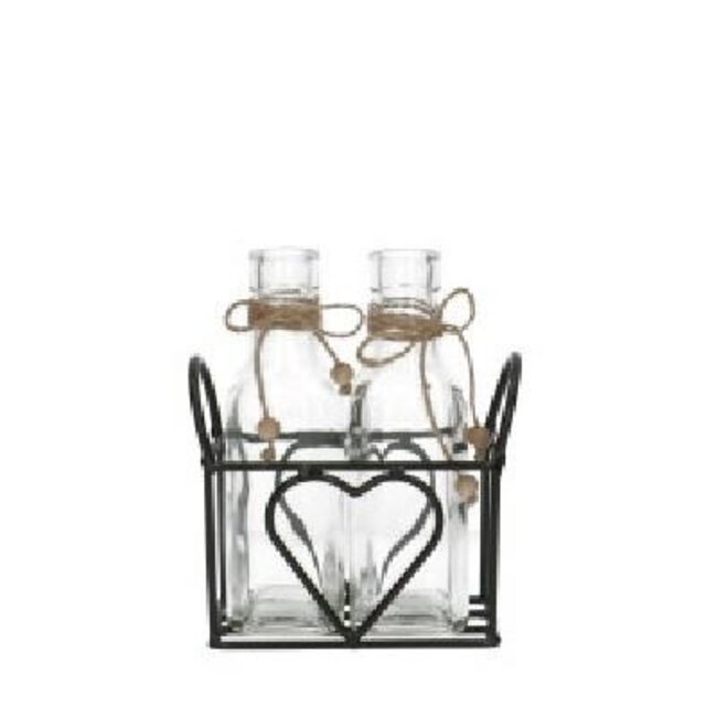 Entdecken Sie den stilvollen Herz-Korb mit 2 Fläschchen von 4A, ein raffiniertes Dekorationsstück, das perfekt für verschiedene Anlässe ist. Dieses Produkt in elegantem Schwarz bietet eine vielseitige Lösung für Floristen und Dekorateure, die nach einzigartigen und attraktiven Präsentationsmöglichkeiten suchen. Die Fläschchen haben einen Durchmesser von 5 Zentimetern und eine Höhe von 15,5 Zentimetern, was sie ideal für die Präsentation kleiner Blumenarrangements oder dekorativer Elemente macht.