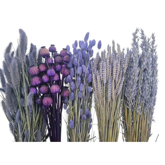 Die Trockenblumen DIY-Set "Vlieland" ist ein sorgfältig zusammengestelltes Sortiment von lila akzentuierten Trockenblumen, das für Fachleute entwickelt wurde, die hochwertige, pflegeleichte und langlebige Dekorationen herstellen möchten. Die Set kombiniert natürliche Materialien mit langanhaltender Farbbeständigkeit und struktureller Festigkeit, mit ausgewählten Arten wie Helichrysum (Strohblume), Ruscus, Mohn, Ginster und getrockneten Rosen, um Textur, Tiefe und eine reiche lila Palette zu bieten. Als Produkt von Dried Concepts erfüllt das Set strenge Qualitäts- und Rückverfolgbarkeitsstandards, wodurch Floristen, Innenarchitekten und Eventplaner Konsistenz und Zuverlässigkeit bei der Zusammenstellung von Arrangements, festen Displays und temporären Projekten erhalten.