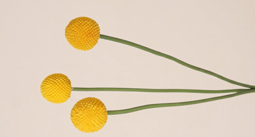 The Craspedia, also known as Billy Buttons, is loved for its sleek round shape and bright yellow color. Our artificial version maintains that perfect spherical shape and intense color for years, without fading, ideal for long-lasting commercial projects.