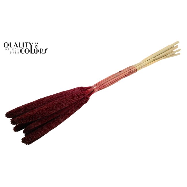 Babala (Pearl Millet) in bordeaux red from QC offers professional florists, interior designers, and event planners a sustainable, low-maintenance, and visually strong dried flower solution for both small-scale arrangements and large-scale projects. The pearl millet is carefully dried to preserve colour intensity and grain structure, ensuring consistent quality and long shelf life; qualities that are essential for seasonal decorations, permanent store displays, and ceremonies where reliability and aesthetics come together. As a natural grain type, babala adds texture and depth to bouquets and installations, and pairs excellently with other dried flowers such as dried roses, poppy, broom, ruscus, and Helichrysum for versatile compositions.