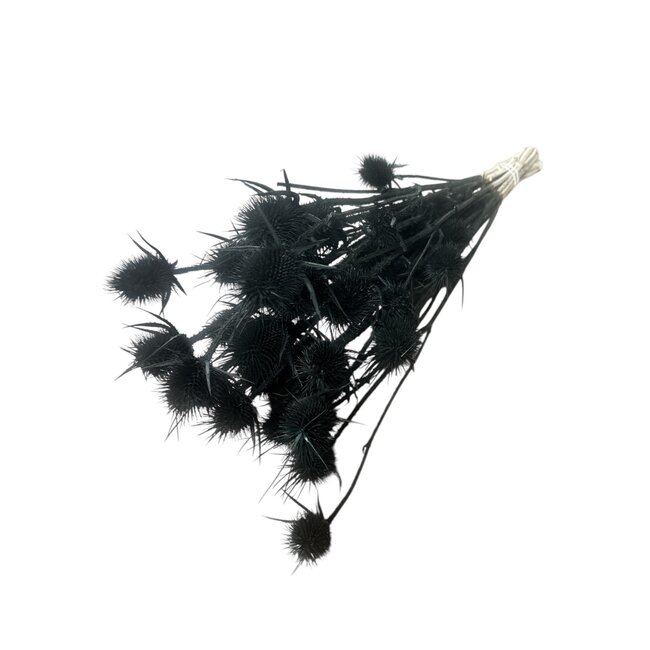 The Black Cardistella Thistles dried flowers from Dutch Dried are a refined choice for florists and interior designers looking for unique and sustainable decorative elements. With a length of approximately 60 centimetres and available in bundles of 10 stems, these dried thistles offer a striking black colour that adds a dramatic and contemporary accent to any floral arrangement or interior design. These thistles fall under the categories of Dried Thistles, Branches and Plumes, and Wholesale Dried Flowers, and are ideal for long-lasting decorations that require no maintenance.
