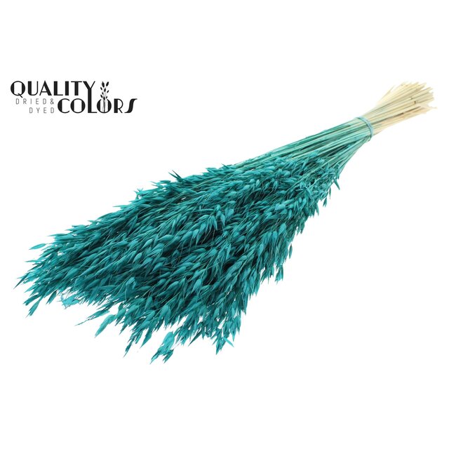 Specifications and categories: Dried Flowers A - E, Dried Flowers, Avena (Oats); product categories: Floristry Items, Grains and Grasses; colour range: Blue, Green, Other colours (here: turquoise); order unit: Per piece / per bunch; material: Natural; length: ± 60 centimetres; weight: 200 grams; packaging: per bunch. Unique selling points: high quality control by QC, sustainable and environmentally friendly alternative to fresh stalks, colour treatment designed for long-lasting colour fastness, and suitable for professional applications such as hospitality & retail design, trade fair stands, events, and large-scale interior projects. For companies that value consistency, sustainability, and aesthetic versatility, this bleached Avena is a reliable choice for commercial floral and decor projects.