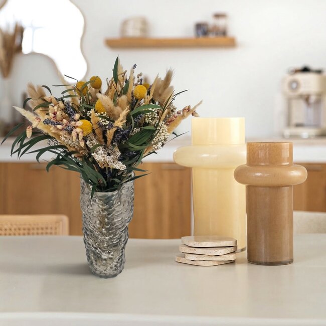 Discover the Bouquet Dried Flowers Natural Summer from Dolce Vita, a masterpiece of summer colours and natural beauty. This bouquet, with a length of approximately 35 centimetres, is composed of carefully selected dried flowers that retain their vibrant appearance. Perfect for florists, interior designers, and event planners looking for a sustainable and stylish addition to their floral arrangements and decorations. The natural materials and mixed colours make this bouquet a versatile choice for any professional application.