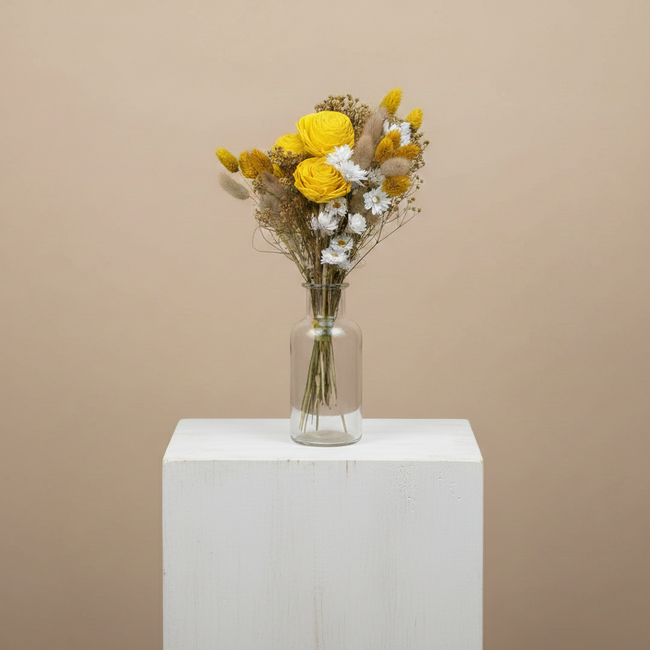 The Rosewood Yellow Dried Flower Bouquet from MyFlowers is a refined composition of natural dried flowers, complemented by yellow artificial roses. With a length of approximately 50 centimetres, this bouquet offers an elegant and sustainable solution for professional applications such as floral arrangements, interior decoration, and events. The use of high-quality materials guarantees long-lasting beauty, making it an ideal choice for florists and interior designers seeking aesthetically pleasing and environmentally friendly alternatives.