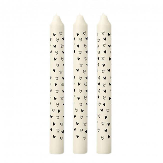 Candle with Hearts | Colour: Black and White | Diameter 2.2 centimeter | Height 20 centimeter | Per 3 candles is an elegant, business choice for florists, interior designers and event planners seeking stylish and consistent lighting for special occasions. These candles from 4A are distinguished by a refined heart structure and a sharp colour contrast in black and white, making them seamlessly applicable within categories such as Candles, Special days, Holidays, Home, Garden & Deco, Home & Hobby and occasions like Mother's Day, Weddings and Valentine's. Product features — Floristry Articles / Occasion Articles; Colour: Black, White; Order unit: Per 3 pieces; Material: Natural — make these candles suitable for table decorations, bridal arrangements and retail displays where aesthetics and consistency are paramount.