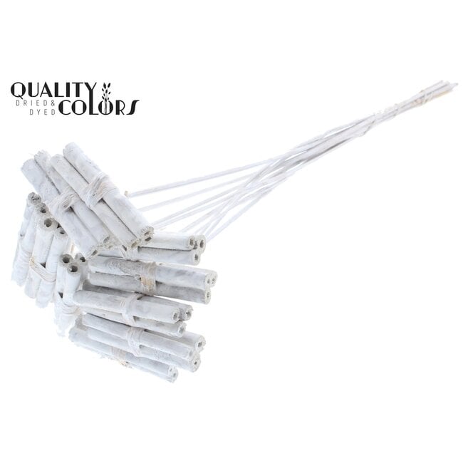 Decorative Jute Stick Posy on a stick | Colour: White | Jute Stick Posy Insert | Length ± 50 centimetres | 10 inserts per bunch is a professional, natural addition to any florist and event range. This jute stick combines a rustic, high-quality appearance with the practical features that professionals demand: consistent finish, strong adhesion on bundles, and a maintenance-free material that pairs well with both dried and artificial flower decorations. Made from natural jute, the product offers a sustainable choice for florists, interior designers, and event planners seeking eco-friendly, long-lasting decor solutions without compromising on aesthetics or workability. The neutral white colour and uniform length make these inserts particularly suitable for standardised production environments and refined presentations in both corporate and private projects.