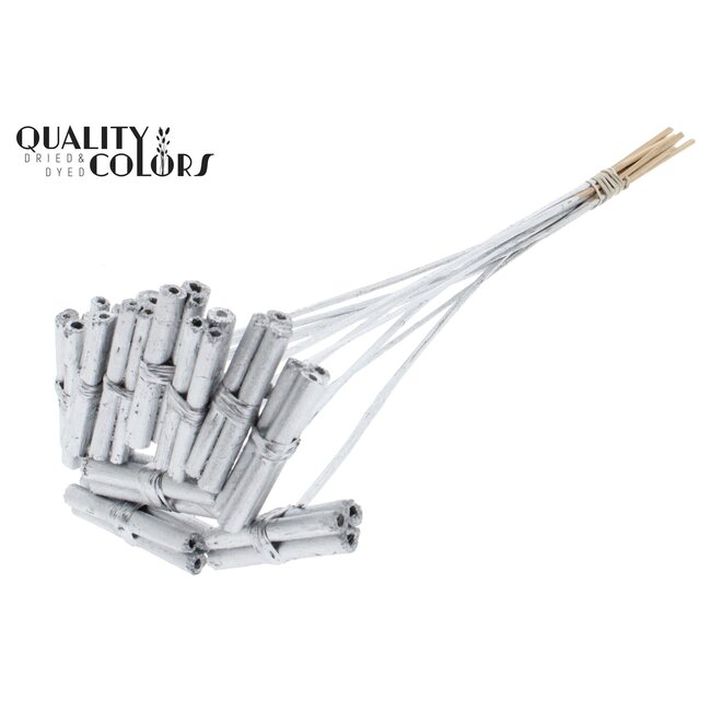 The Decorative Jute Stick Posy on Stick from QC is a refined pick for professional floral and decorative applications. This bundle combines natural jute fibres with a silver finish for a contemporary, sustainable look that perfectly complements both rustic and modern concepts. With ten picks per bunch, the product offers consistent quality and finish, suitable for use as a structural accent in bouquets, table decorations, and event styling, and as subtle support in dried flower compositions within the categories Picks and Dried Deco.