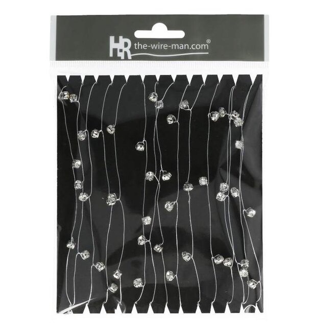 Diamond on Wire | Colour: Silver-coloured | Diamond diameter 5 millimeter | Length 5 meter | Per roll is a refined, durable decoration solution from 4A designed for demanding professional applications. This flexible wire features silver‑coloured crystal accents (diamond Ø 5 millimeter) evenly attached to a strong, shape-retaining core, making it suitable for floristry, bridal work and event styling where precise finishing and durable aesthetics are essential. The combination of high-quality finish, colour fastness and reusability makes this product particularly suitable for florists, interior designers and event planners seeking luxury details without compromising on quality or sustainability.