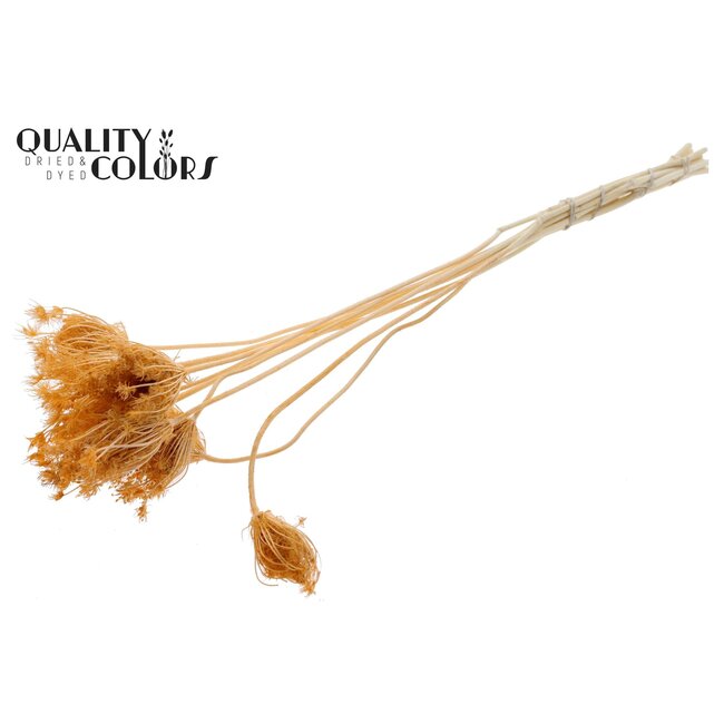 Dried Bleached Ammi Majus | Colour: Salmon is a refined variant of Queen Anne's Lace that, thanks to careful bleaching and natural colour application, retains a soft, long-lasting salmon hue. This Ammi Majus offers florists, interior designers, and event planners a low-maintenance, durable foundation for arrangements, dried bouquets, and large-scale installations: the delicate silhouette and consistent flower heads remain shape-retentive and colour stability is high, ensuring reliable results in product photography, hospitality projects, and seasonal decoration. As a natural and quality-oriented product, it provides added value for business clients who focus on ecologically responsible, long-lasting decoration solutions.