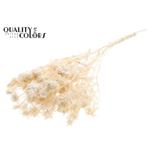 Dried Bleached Carthamus | Safflower or Bidens Dried Flowers | Length ± 70 centimetres | Per bunch is a professionally dried flower product from the brand QC that has been selected and bleached for a consistent, natural white appearance and longer shelf life. This Carthamus (safflower) offers a sturdy stem and natural texture at a length of approximately 70 cm, making it extremely suitable for florists, interior designers, and event planners who need sustainable, low-maintenance, and aesthetically uniform arrangement solutions. Within the range of Dried Flowers (Dried Flowers A - E), Carthamus forms a versatile choice alongside other dried flowers such as dried roses, poppy, broom, ruscus, and Helichrysum, ideal for both individual sales and large-scale projects and stock planning.