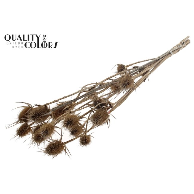 Dried Cardistella Thistles in Natural Light Brown are robust, characterful dried flowers that have been specially selected and carefully dried to retain their shape, texture, and natural colour; with a length of ±55 centimetres and 10 stems per bunch, this product offers consistent, professional results for wholesale deliveries. This Cardi Stella (Thistle) stands out due to its sustainable origin and long lifespan, providing florists, interior designers, and event planners with reliable, low-maintenance elements for seasonal and permanent installations — ideal for large arrangements, boutique interiors, and long-lasting event decorations. Processing by quality-focused suppliers such as QC ensures colourfastness and uniform quality per delivery, which is important for projects with tight schedules and aesthetic requirements.