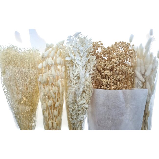 The Dried Flowers DIY Set "Barcelona" from Dried Concepts is a carefully curated business solution within the Dried Flowers category, specifically developed for florists, interior designers, and event planners seeking sustainable, low-maintenance, and aesthetically versatile materials. This set, executed in natural white tones, is ideal for elegant bridal bouquets, long-lasting shop displays, and atmospheric interior installations; as a supplement to or alternative for traditional fresh arrangements, the set pairs well with classic dried flowers such as dried roses, poppies, broom, ruscus, and Helichrysum to add texture and depth to designs. The emphasis on high quality, colourfastness, and sustainability makes the set particularly suitable for professionals who demand consistency and longevity in their decorations.