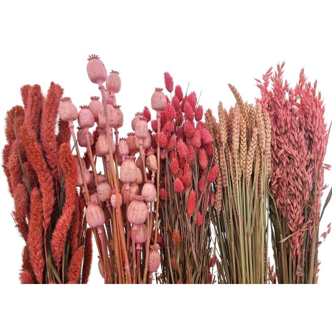 The Dried Flowers DIY Set "Tiengemeten" is a carefully curated collection of dried flowers in soft pink hues, assembled for professional applications. This set includes carefully selected varieties such as dried roses, poppy, broom, ruscus, and Helichrysum, all made from natural materials and processed according to high-quality standards of Dried Concepts. As part of the Dried Flowers category, the set offers long-lasting colour stability and texture, low maintenance needs, and a sustainable alternative to fresh flowers, available individually or in sets of 5 to ensure purchasing flexibility and consistent deliveries for business users.
