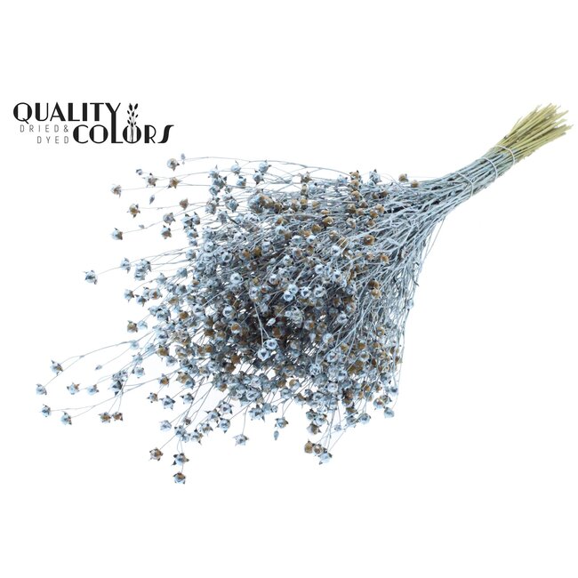 Dried Lino Flax from QC is a premium Linum (flax) dried flower, carefully selected and finished with a sustainable blue metallic pigment. With a length of ± 50 centimetres and a weight of approximately 150 grams per bunch, this natural material retains its structure and shape, making it extremely suitable for long-lasting decorations, permanent installations, and high-quality floral arrangements. The combination of natural quality and a colour treatment that respects colourfastness and texture makes this product attractive to florists, interior designers, and event planners seeking low-maintenance, aesthetically consistent, and environmentally friendly alternatives to fresh flowers.