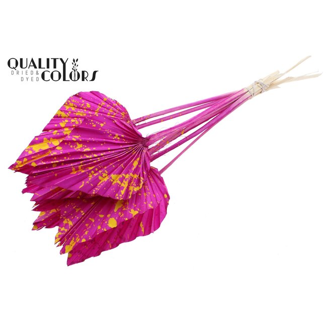 Dried Palm Spear | Colour: Speckled Lilac Yellow | Spear-Shaped Palm Leaves | Length ± 55 centimetres | 10 stems per bunch | Per bunch — The Dried Palm Spear from B2B Flowers BV, delivered under the quality brand QC, offers a distinctive, architectural design with spear-shaped palm leaves and a modern, speckled lilac-yellow hue that seamlessly integrates into contemporary floral arrangements and interior concepts. Due to the natural drying process, these palm leaves retain stability and colourfastness, making them highly suitable for florists, interior designers, and event planners seeking sustainable, low-maintenance elements for long-term installations, retail displays, and event decoration.