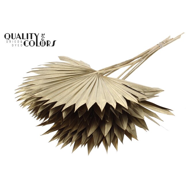 The Dried Palm Sun Spear from QC is a high-quality, antique gold fan-shaped palm designed for professional applications in floristry and interior styling. With a consistent structure and natural fibre quality, this product offers long-lasting colour retention and shape preservation, making it ideal for florists, interior designers, and event planners seeking durable, low-maintenance accents for displays, large arrangements, and seasonal decorations. As part of the Dried Flowers range and specifically the Arecaceae (Palms) category, the Sun Spear effortlessly combines with other dried materials such as dried roses, poppies, broom, ruscus, and Helichrysum to create both contrasting and harmonious compositions.