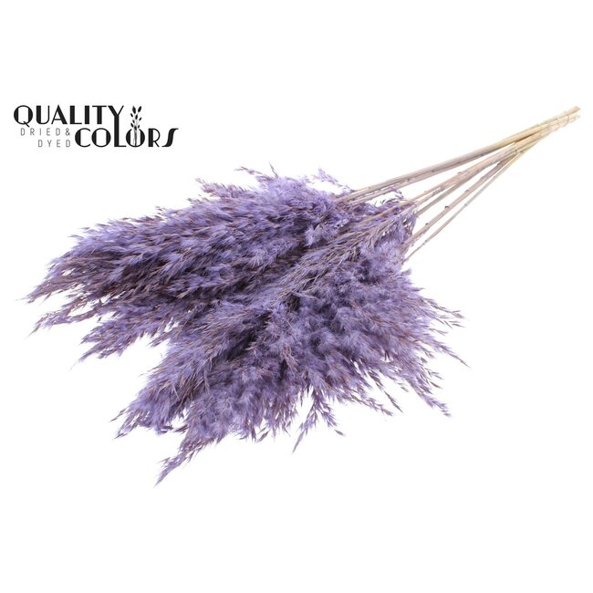 Dried Pampas Plumes | Colour: Frosted Milk Purple | Pampas Dried Flowers | Length ± 70 centimetres | 10 plumes per bunch | Each bunch contains elegant, sustainably dried Cortaderia plumes distinguished by their soft texture, consistent quality, and saturated purple-tinted colour. These pampas are carefully selected and processed according to professional quality standards of QC, making them highly suitable for florists, interior designers, and event planners who need reliable, low-maintenance, and long-lasting decorations. Due to their natural material and colourfastness, they form a sustainable alternative to fresh materials and are excellent for arrangements, large installation projects, showrooms, and photo sets, both as solo accents and combined with dried roses, poppy, broom, ruscus, and Helichrysum for complex compositions.