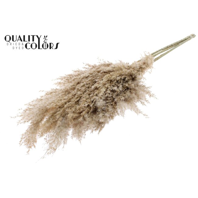 Discover the refined beauty of the QC dried pampas plumes in a natural brown hue. With a length of approximately 70 centimetres and 10 plumes per bunch, these pampas dried flowers offer an elegant and timeless addition to any interior or event. These plumes are ideal for florists, interior designers, and event planners seeking sustainable and stylish decorative solutions. Their natural appearance and long lifespan make them an excellent choice for floral arrangements and decorations that need to make a lasting impact.