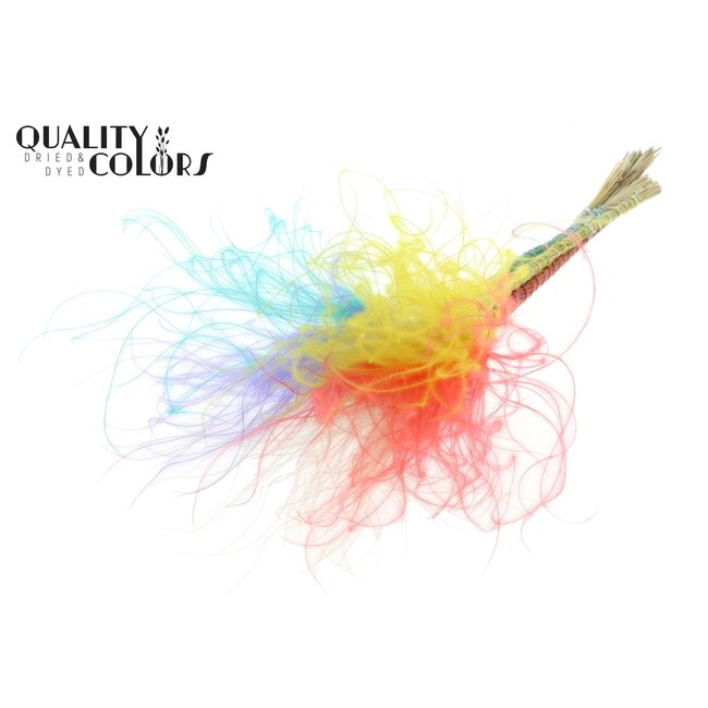 Product details and professional specifications: Title — Dried Stipa Feather Grass “Colourful 5” | Colour: Mixed Colours | Stypha Penata Dried Flowers | Length ± 60 centimetres | 10 plumes per bunch | Per bunch; Brand — QC; Categories — Dried Flowers P - Z, Dried Flowers, Stipa Pennata (Feather Grass); Product Classification — Floristry Items, Grains and Grasses, Branches and Plumes; Order Unit — Per piece; Material — Natural; Colour — Mixed colours. The combination of consistent dimensions, limited fragility after drying, and colour fastness under professional conditions makes this feather grass particularly suitable for wholesale orders and project-based purchasing, where reliability and high-quality finish are crucial for business use.