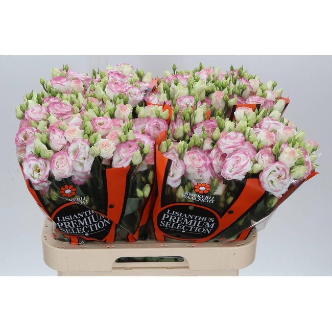 Specifications and commercial features: Categories: Fresh flowers D - K; Fresh flowers; Eustoma (Lisianthus). Product: Fresh Flowers; Type: Filled (double bloom form); Colour: Pink, White; Ordering unit: Per 10 Pieces; Length: ± 70 centimetre; Material: Natural; Brand: Freshy. Business applications: florists for bridal work and seasonal collections, interior designers for long-term styling and hospitality projects, event planners for reliable and visually consistent floristry at scale. Unique selling points: carefully selected cultivation and logistics for minimal wastage, sustainable growing practices and traceability, consistent batch quality for efficient processing and planning. Related professional assortment possibilities include other Eustoma varieties within the Fresh flowers D - K category and additional fresh seasonal flowers for complementary designs.