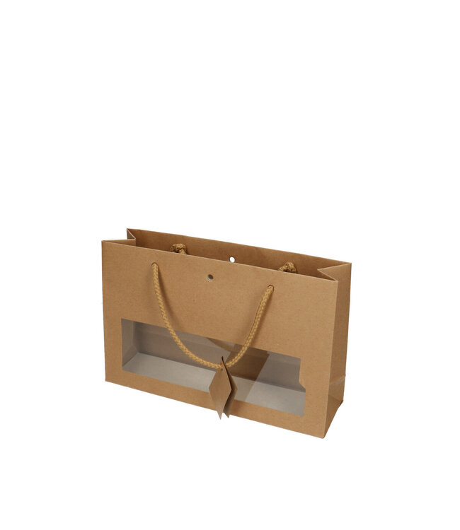 The gift bags with window from the brand 4A offer an elegant and functional solution for presenting gifts and floral arrangements. Measuring 28 x 8 x 18 centimetres and available in packs of 12, these bags are ideal for businesses in the floristry supplies and occasion supplies sector. The bags are made from high-quality brown paper, which is not only an environmentally friendly choice but also provides a natural and rustic look that perfectly suits various occasions and celebrations.