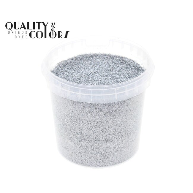 Product details: Glitter in Reusable Bucket “Laser Silver” — Colour: Silver (Grey / Metallic Colours / Other Colours); Content: 400 grams; Order unit: Per piece (per bucket); Categories / Applications: Decoration, Floristry Items, Hobby Materials, Occasion Items; Brand: QC; Material classification: Other materials. USPs: high colour intensity and consistency, practical reusable packaging to reduce logistical waste, suitable for long-term professional applications and combinations with dried flowers, silk flowers, and event assortments. These specifications make the product particularly suitable for business professionals seeking a reliable, high-quality, and sustainable glitter method within their creative projects.