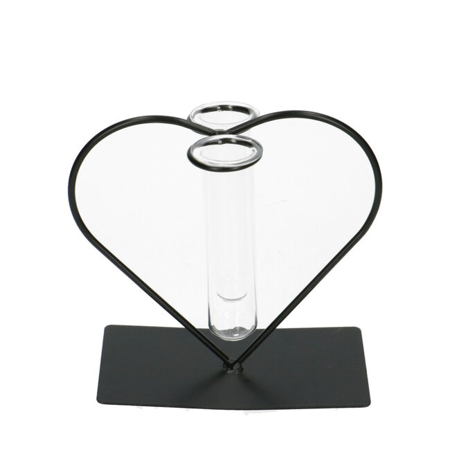 The 4A Heart Frame with 2 Tube Vases is a refined decorative item that is perfect for various professional applications. This stylish frame, executed in an elegant black colour, offers a modern and minimalist appearance that seamlessly fits into any setting. With a length of 15 centimetres and tube vases with a diameter of 3.5 centimetres, this product is ideal for florists and decorators looking for unique and versatile decoration solutions.
