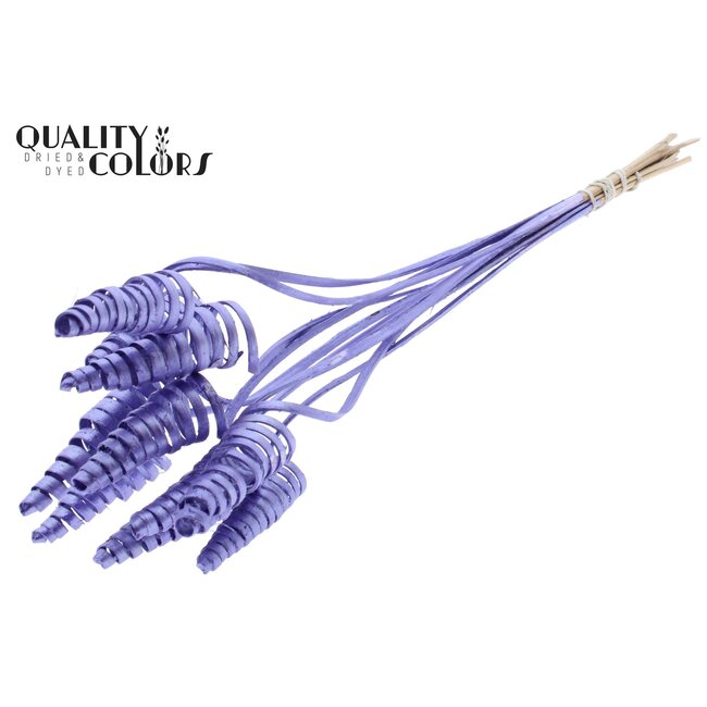 Palm Spiral on stem | Colour: Metallic Purple | Cane Cone Pick | Length of pick ± 50 centimetres | Per 10 picks — this high-quality pick combines a solid natural stem with a decorative metallic purple finish that complements high-end floral arrangements and interior projects. The Palm Spiral is designed for professional use by florists, interior designers, and event planners who need durable, shape-retaining accents in dried flower compositions or mixed arrangements; the cane cone attachment ensures quick and reliable integration into usable structures. As part of the QC range, this product guarantees consistent quality and longevity, with a natural material choice that contributes to a circular approach within floristry and home decoration. The spiral blends seamlessly with dried flower varieties such as dried roses, poppy, broom, ruscus, and Helichrysum and can also be combined with silk flowers for low-maintenance project applications.