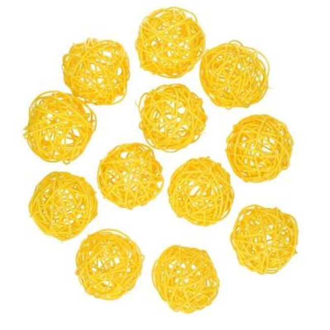 Rotan Rattan Ball | Colour: Yellow | Diameter 6 centimetre | Per 12 balls from 4A is a professionally finished decorative element that combines natural aesthetics with commercial robustness. The handy diameter of 6 cm and the vivid yellow colour make these rattan balls particularly suitable for florists, interior designers and event planners seeking durable, low-maintenance accents for arrangements, wreaths, displays and themed installations. Made from sustainably harvested rattan, these balls offer an environmentally friendly alternative to plastic decorations and meet high quality standards for consistency in colour and size for large-scale projects and retail presentations.