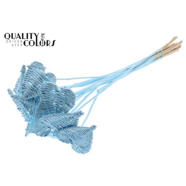 Rattan Lata Heart on stick | Colour: Light Blue | Lata Heart flat Pick — a refined, sustainable decoration solution for professional florists and event stylists. This light blue rattan heart pick combines a natural look with a sleek, flat shape that is perfect for floral arrangements, table decorations, and thematic installations at weddings and special occasions. Made from natural rattan and finished to high quality standards by QC, this product offers consistency in colour and shape, long lifespan, and low-maintenance application for interior design, hospitality and event decoration, as well as seasonal campaigns such as Mother's Day and Valentine's Day.