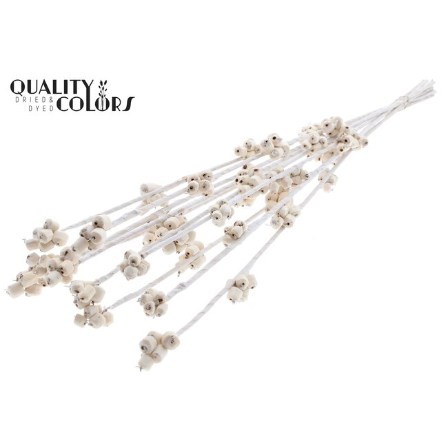 The Shola berry stem pick | Colour: Natural White | Shola Berries | Length ± 75 centimeter | 10 picks per bunch | Per bunch is a refined and sustainable artificial flower solution designed for professional applications. These lightweight, hand-formed shola berries offer a natural appearance and consistent quality valued by florists, interior designers and event planners for corsages, bouquet accents, table arrangements and long-lasting indoor installations. As part of the Shola Flowers collection this product delivers a realistic texture and neutral colouration (natural/white) that is easy to combine and customise, without the fragility of fresh materials.