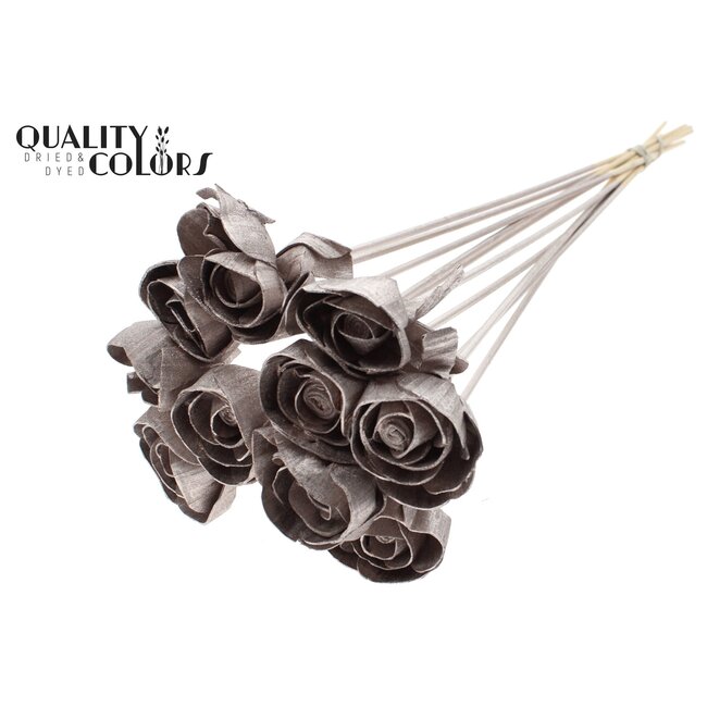 Product details and specifications: Title: Shola Rose on stem | Colour: Champagne-coloured (also available in Pink, Yellow, Grey, Other colours, White); Collection/categories: Dear Holly, Shola Flowers, Artificial Flowers; Brand: QC; Flower diameter: 6 centimeter; Stem length: ± 50 centimeter; Quantity: 10 picks per bunch; Ordering unit: per bunch; Applications: florists, interior designers, event planners, wholesalers and retailers; Material: Natural (shola plant fibre); Product category: Floristry Items, Artificial Flowers. This combination of specifications makes the Shola Rose on stem suitable for both high-end floral projects and durable commercial furnishing.