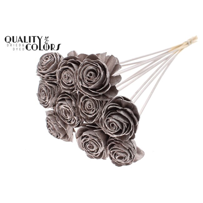 Shola Roos op stok | Colour: champagne-coloured | Shola Beauty Rose | Diameter 6 centimeter | Lengte ± 50 centimeter | 10 picks per bunch | Per bunch is een verfijnde, hoogwaardige shola-bloem op steel die natuurlijke esthetiek combineert met professionele duurzaamheid. Gemaakt van natuurlijk shola-materiaal biedt deze Shola Beauty Rose een realistische uitstraling en consistente afmetingen, waardoor hij uitermate geschikt is voor bloemisten die elegante bruidsboeketten en decoraties willen samenstellen, interieurontwerpers die langhoudende en onderhoudsarme installaties zoeken, en eventplanners die betrouwbare, kleurvaste accenten nodig hebben voor grootschalige producties. Dankzij het onderhoudsvrije karakter en de biologische oorsprong van shola is dit product een duurzaam alternatief voor verse bloemen zonder concessies aan hoogwaardige presentatie en afwerking.