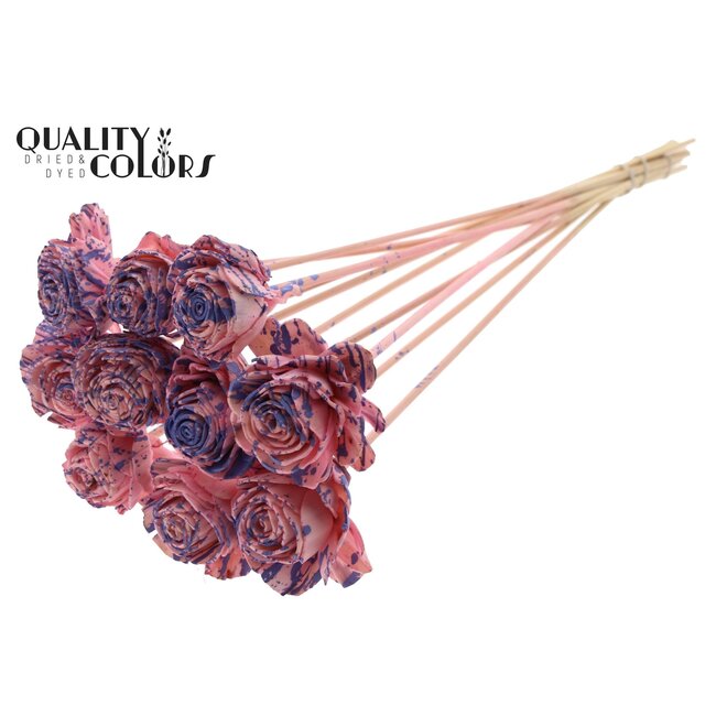 Shola Rose on stem | Colour: Speckled Pink Milk Purple — this Shola Beauty Rose combines a refined, realistic appearance with durable materials and is specially developed for professional use within floristry, interior and event projects. The rose is made from natural sholapith, making each stem lightweight, biodegradable and colourfast; due to the precise finish and the long-lasting character this product is extremely suitable for florists who want to assemble low-maintenance, high-quality arrangements, interior designers seeking sustainable accents and event planners who need consistent quality for large-scale applications. The finish in speckled pink and milk purple delivers a distinctive, modern look that photographs well and remains consistently durable under use.