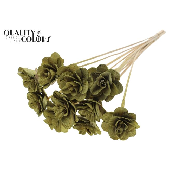 The Shola Wooden Rose on stem (Shola Beetal Rose Stem) in olive green from QC is a refined, natural artificial flower designed for professional applications. With a rose diameter of 8 centimetres and a stem length of approximately 50 centimetres, this product offers consistent dimensions and a realistic appearance, packaged per bunch of 10 stems. As part of our Shola Flowers collection and within the Artificial Flowers category, this olive green variant fits seamlessly into floristry items and high-quality decor projects for florists, interior designers, and event planners seeking low-maintenance, natural aesthetics.