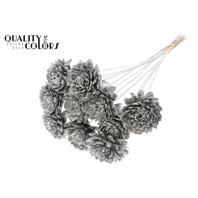 The Shola Zinnia flower on stem (Shola Zinnia) from QC is a high-quality artificial flower within the categories Zinnia, Shola Flowers and Artificial Flowers, developed for professional applications in floristry items and interior projects. This platinum-coloured zinnia has a realistic diameter of 6 centimetres and a length of ±50 centimetres, is supplied per bunch with 10 picks and is made of natural shola material making it a low-maintenance, colourfast and durable alternative to fresh flowers. Available in colours such as grey, metallic colours, white and other colours and produced within the size categories Diameter 0–10 centimetres and Height 41–50 centimetres; ordering method: per piece/per bunch.