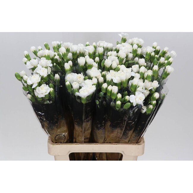 Spray carnation “Ibis” | Colour: White | Length ± 60 centimetre | Per 25 fresh flowers is a carefully selected, high-quality carnation from our Freshy range that delivers consistency and elegance for professional applications. This white spray carnation is distinguished by sturdy stems, even flower heads and long-lasting quality that supports florists, event planners and interior designers in creating clean bouquets, large-scale installations and stylish hospitality decorations. Freshy stands for controlled cultivation and logistics, ensuring colour uniformity and shelf life — qualities that make time-sensitive projects and large order volumes more financially and operationally attractive.