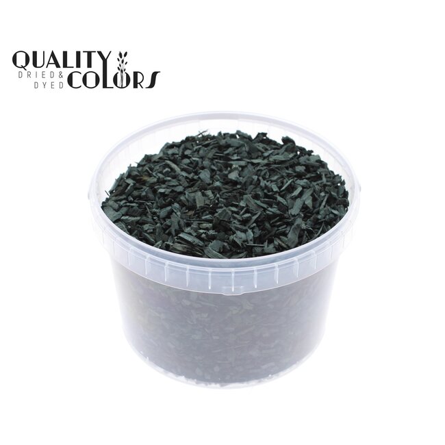 Wood Chips in Reusable Bucket | Colour: Black | Capacity 3 litres | Per bucket — These high-quality black wood chips from QC are a professional decoration material that combines durability and consistency for commercial applications. The natural wood composition and the reusable bucket make this product appealing to florists seeking sharp, colourfast accents in dried bouquets and presentations, interior designers adding sustainable finishing and texture to styling projects, and event planners needing robust, low-maintenance filler for table decorations, displays, and props. Thanks to strict quality control, this product offers a uniform look and easy processing in both repetitive production environments and custom designs.