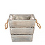 These planters are ideal for florists and interior designers looking for high-quality decorative elements that are both aesthetic and functional. The natural wood material provides a warm and authentic appearance, while the grey colour adds a modern touch. The “Vanga” planters are delivered in sets of 10, making them particularly suitable for large-scale projects and events. With a height between 11 and 20 centimetres and a diameter between 21 and 30 centimetres, these pots fit perfectly into various interior styles and decorative arrangements.