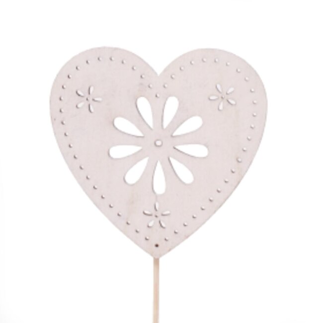 Wooden Heart Stem Pick | Colour: Natural white | Diameter 8 centimeter | Length stem pick ± 50 centimeter | Per 25 stem picks — this sturdy wooden heart from 4A is designed for professional florists, interior designers and event planners who are looking for a durable, aesthetic and user-friendly finish for arrangements. The natural white / natural-coloured finish and the robust wooden material provide stability in a variety of applications, from bridal work and table decorations for Weddings to themed presentations for Mother's Day and Valentine’s. The stem pick works excellently in combination with both dried flowers (such as dried roses, poppy, broom, ruscus and Helichrysum) and high-quality silk flowers, making it versatile within Floristry Articles and Occasion Articles.