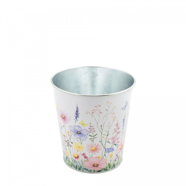 Product details: Zinc Plant Pot “Alona Flowers” | Brand: 4A | Categories: Home, Garden & Deco; Home & Hobby; Pots & Vases | Application: Decoration, Floristry Items | Colour: Natural, White | Material: Zinc | Dimensions: Diameter 13 centimeter, Height 13 centimeter | Order unit: Per 10 Pieces. This product is optimised for professional purchasing with consistent sizing and finish, thus ideal for stock management, showrooms and project furnishing where quality, durability and visual consistency are central.