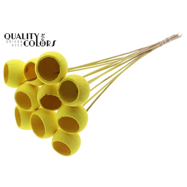 De gebleekte gedroogde Bellgums van QC zijn natuurlijke, zorgvuldig gedroogde bijstekers met een heldere gele kleur en een uitgewerkte bell cup-structuur die textuur en hoogte toevoegt aan professionele bloemcomposities. Dit product is ontworpen voor gebruik door bloemisten, interieurontwerpers en event planners die op zoek zijn naar lichtgewicht, duurzame materialen met een consistente kwaliteit en lange levensduur; de bleking zorgt voor kleurvastheid en uniformiteit in grootschalige projecten en zorgt tegelijkertijd voor een tijdloos, onderhoudsarm alternatief voor verse materialen. Door de natuurgetrouwe uitstraling en robuuste eigenschappen lenen deze bijstekers zich uitstekend voor droogboeketten, statement-installaties en duurzame styling in horeca- en retailomgevingen.