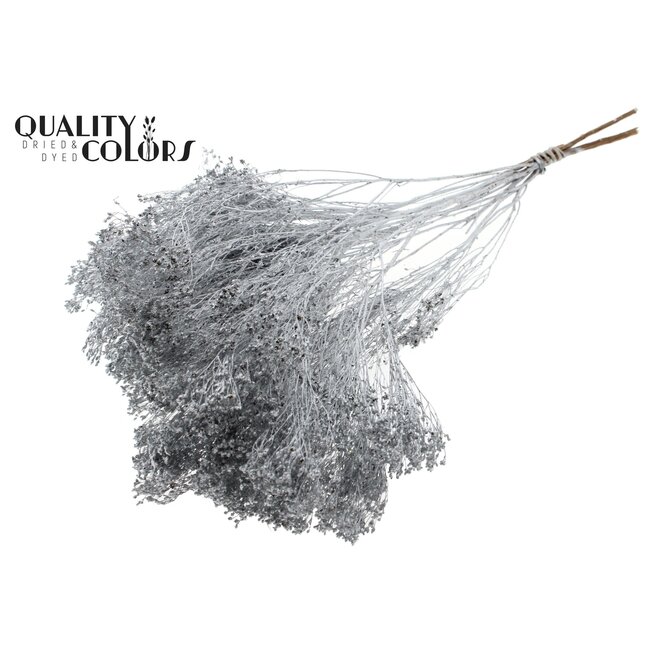 De Gedroogde Broom Bloom in zilverkleurige tint is een hoogwaardige, natuurlijke brembloesem die specifiek is geselecteerd voor professionele toepassingen; licht van gewicht (±100 gram per bos) en behoudt langdurig zijn tekstuur en kleur. Dit product van QC biedt floristen, interieurontwerpers en event planners een duurzame en onderhoudsarme optie voor seizoensdecoraties, bruidswerk en visuele installaties waar een verfijnde metallic look gewenst is. In combinatie met andere droogbloemen zoals gedroogde rozen, papaver, ruscus en Helichrysum levert de Broom Bloom extra structuur en contrast in bloemstukken en arrangementen, terwijl het natuurlijke materiaal bijdraagt aan een eco-verantwoorde uitstraling.