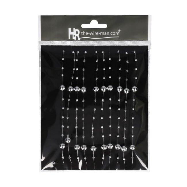 Parelslinger Draad | Kleur: Zilverkleurig | Lengte 3 meter | Per slinger is een professioneel afgewerkte, 3 meter lange sierketting op draad van het merk 4A, ontworpen voor toepassing in bloemisterij- en eventprojecten. Dit veelzijdige product combineert een subtiele metallic uitstraling met een flexibele draadkern, waardoor het eenvoudig vormt en fixeert in boeketten, bloemwerk, tafeldecoraties en verpakkingen. De parelslinger sluit naadloos aan op categorien als Draad, Linten en toepassingen voor Trouwen, en is ontwikkeld met de professionele gebruiker — bloemisten, interieurontwerpers en eventplanners — in gedachten.