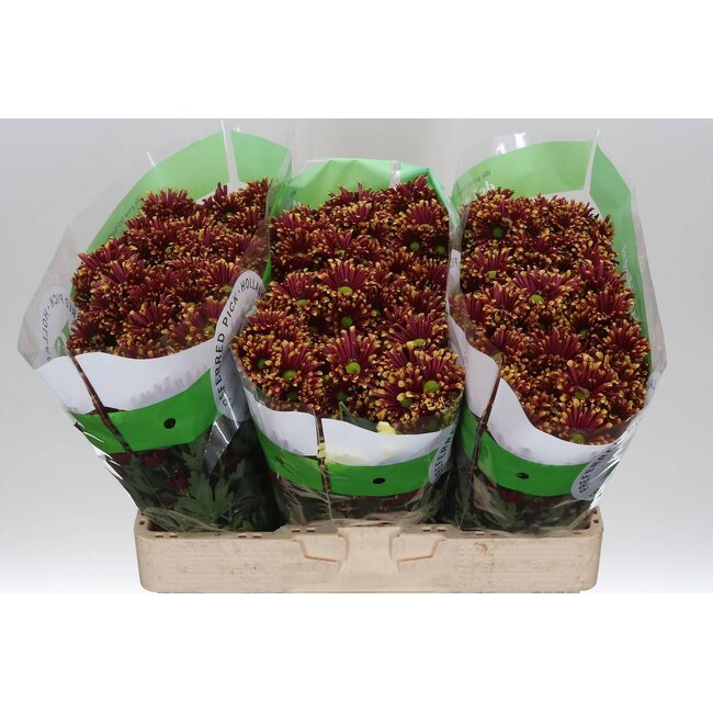 Beoordeel Freshy Chrysanthemum Chrysant Santini “Miri Geel” | Kleur: Rood | Lengte ± 55 centimeter | Per 25 stelen