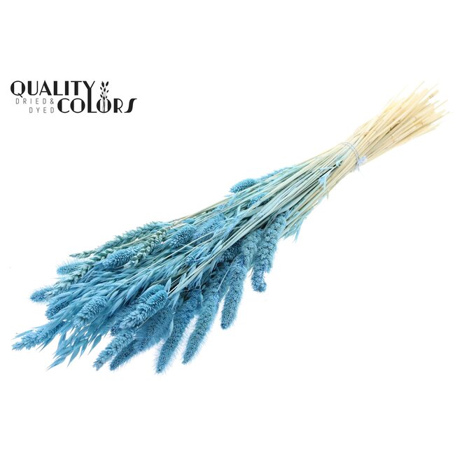 Beoordeel QC Boeket Gebleekte Gedroogde Bloemenmix | Kleur: Lichtblauw | Lengte ± 60 centimeter | Per bos