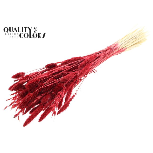 Beoordeel QC Boeket Gebleekte Gedroogde Bloemenmix | Kleur: Rood | Lengte ± 60 centimeter | Per bos